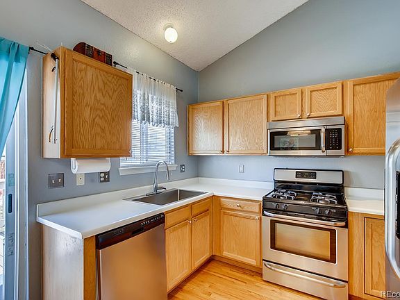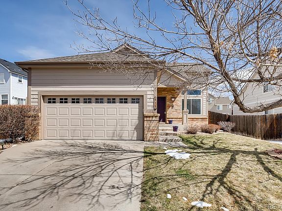 Sunny, cute and welcoming home in terrific Sterling Hills features vaulted ceilings in the living and dining area, a kitchen with wood floors, stainless appliances, large farmhouse sink and backyard views. A newer patio door opens onto a large deck with a super hot tub - enjoy staycations at home in ease! Master bedroom features a vaulted ceiling and nice size closet. Roomy lower level has a living room, bedroom, and full bathroom. Refrigerator, washer and dryer are also included! Back yard is fenced with plenty of space to play and/or entertain and don't miss the apple and cherry tree! Newer roof (2016), 2 front windows and garage door. Great area to live plus an easy commute to Buckley Air Force Base. Close to nearby parks, schools and the new recreation facility. Check out the virtual tour !!