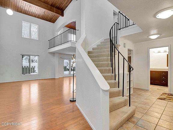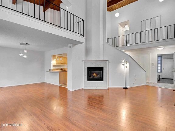 This large open concept home in Woodside East is an end unit with vaulted ceilings and 2 large bedrooms each with their own walk in closets and bathrooms. Plus another half bath downstairs. The many windows let in lots of natural light and the oversized arctic entry is any Alaskan's dream. Woodside East HOA has community tennis courts, covered RV parking, and HOA dues cover driveway snow removal