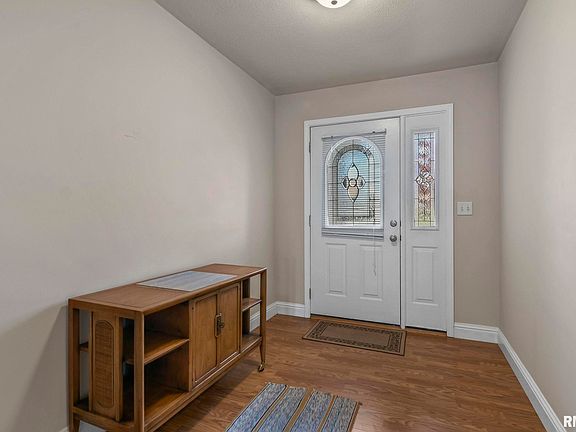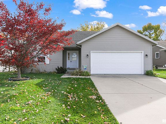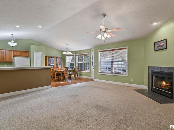 Ranch with open floor plan, 3 bedrooms and 2 full bathrooms. Living room has vaulted ceilings and fireplace, kitchen with dining area, breakfast bar and pantry. Primary bedroom has full bath and walk in closet. Pull down attic storage in garage. Dining area, table, chairs, and hutch can be purchased.