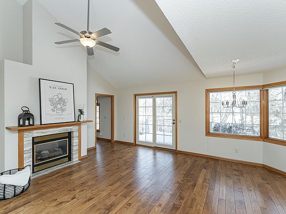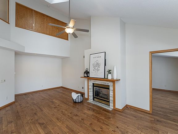 STEP INSIDE. . . this beautifully designed townhome, offering a perfect blend of space, style, and comfort. The main floor features soaring ceilings and an open-concept living and dining area, leading into a stylish kitchen with gorgeous quartz countertops, a large island, and newer stainless steel appliances. A cozy 2-sided tiled fireplace with a wood mantle adds both warmth and charm, creating the perfect spot to relax. The main-level owner's suite offers a fireplace, walk-in closet with attic storage, vaulted ceilings, and a 3/4 bath. Upstairs, enjoy wood floors throughout, with a second bedroom featuring a full bath and walk-in closet, an additional bedroom, and a convenient laundry area with a newer washer/dryer and utility sink. Step outside onto the large deck-ideal for entertaining and enjoying the outdoors. Located in a prime area near city parks, scenic bike and walking trails, and just minutes from shopping and dining, this home combines modern living with an unbeatable location. Don't miss this incredible opportunity!