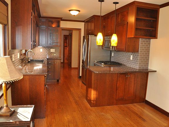 Enjoy your tour of this Mid Century Modern home with 4 bedrooms, 3 baths, including 3 bedrooms on the main and a primary bedroom with a tiled 3/4 bath. The kitchen has gorgeous Schoenhard's Custom Cabinets, granite countertops, a breakfast bar, AND an eat-in area! The beautiful hardwood floors in the kitchen run throughout the main level of the home. The living room features a fireplace and the 3 season porch is just off the dining area. Both the main bath and the primary bath are tiled and retain the popular mid century modern motif. This lower level has new carpet, a 2nd fireplace + has “room to roam”, making it perfect for entertaining your family and friends. There is even a summer kitchen with a separate dining area or game room. The 4th bedroom is spacious, as is the office with a double closet. The office has egress windows, but they do not meet the current code. The rear yard is fenced with a storage shed and the attached garage is a double with a huge parking pad. Did I mention the updated windows and the 2024 HVAC system?