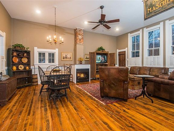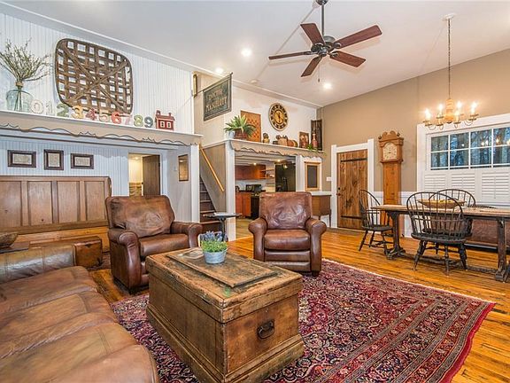 "Schoolhouse Inn" Cottonwood School--one-room schoolhouse restored maintaining all the original charm plus conveniences and comfort expected in an Overnight Tourist Rental. Features of the original structure include heart pine flooring, main floor wainscoting and 7 foot windows with the original glass. Complete with a belfry and bell used to call the kids back into their seats. Antique-filled rooms: great room with 12 foot ceiling has a gas-log fireplace and dining area; kitchen with all appliances and custom cabinetry; tiled bath with large shower, custom vanity. Upstairs bedrooms have wood floors, queen-size beds. Enjoy nature from the patio with fire pit and open deck with bubbling hot tub. Approved for 4 guests, furnished.