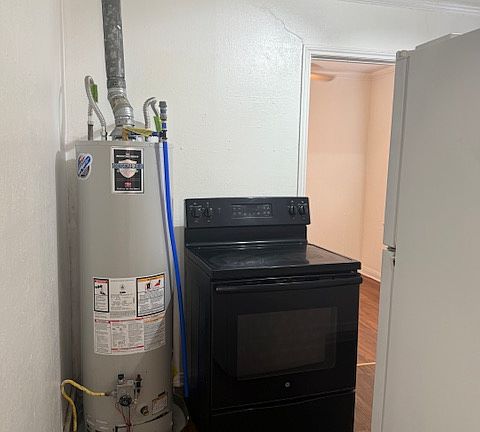 Come by and tour this home! Includes carpet, ceiling fans, and washer/dryer hookups. Built-in located in the dining area with cabinet storage below. The kitchen consists of a freestanding range, refrigerator, and beautifully painted cabinets. Fully fenced yard to bring your fur babies along. Double carport parking and storage building in the backyard.
