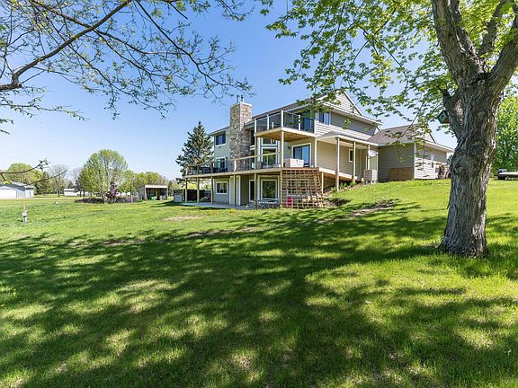 Experience luxury lake living in this stunning home on Anna Lake just north of Underwood. This spacious lake home sits on 5 very rare, beautiful acres, with over 245' of level lake frontage. As you step inside the home, you'll be greeted by a breathtaking view of the lake, showcased beautifully by the two-story gas fireplace in the living room. The wall of windows allows natural light to flood the space, creating a warm and inviting atmosphere. The expansive new deck is perfect for entertaining or just relaxing in the sunshine. Custom kitchen featuring beautiful cabinetry, a large center island, granite countertops, and stainless steel appliances. Main floor also includes a great den/bedroom, bath, and great storage with built ins. Upstairs, you'll find 3 bedrooms, including the large ensuite and private balcony and a laundry room. The walkout lower level, is framed and ready for you to finish or enjoy open. Don't miss your chance to own this exceptional lake home!
