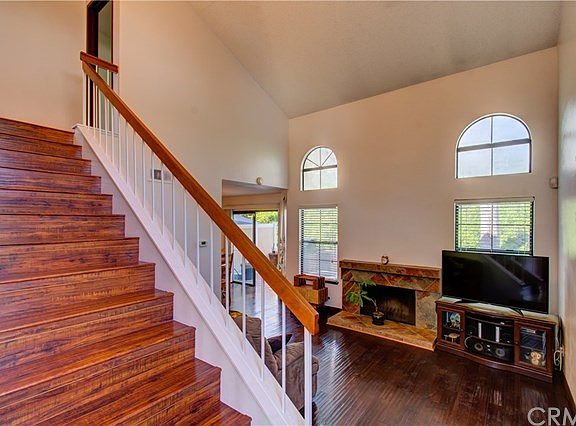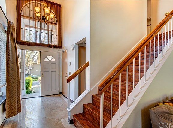This turnkey, two-story town home has cathedral ceilings and multiple large windows that make it light and bright. The functional floor plan offers 3 bedrooms (all upstairs), 2.5 bathrooms (powder room downstairs), an attached 2-car garage, double door entry, and a large enclosed patio with built in barbecue and smoker. Upgrades include new kitchen countertops and decorative glass backsplash, tile flooring, laminated wood flooring, mirrored closet doors, ceiling fans, slate fire place, and a newer air condition unit. This is a private end unit location, no through traffic in the street. The community has a pool and spa and Lake Mission Viejo privileges.