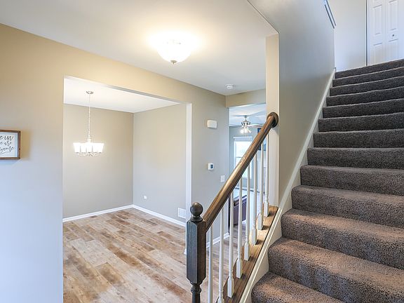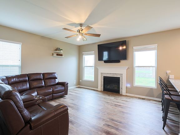 Welcome to your dream home! This stunning new build from 2020 still shines like it's fresh off the market. With 9' ceilings on the main floor, this home exudes spaciousness and modern elegance. Step into the 18k in add'l upgrades from the builder: upgraded kitchen boasting 42" maple cabinets with rollout shelving, a kitchen island, granite countertops, and top-of-the-line stainless steel appliances. The kitchen has both an eating area and a large breakfast bar. The open floorplan is perfect for entertaining. The upgraded luxury vinyl plank flooring flows seamlessly throughout the main floor, leading to a cozy fireplace and mantel perfect for chilly evenings.The master suite is a sanctuary, featuring a double vanity, upgraded tile shower, and even an optional bidet feature! Upstairs, discover three bedrooms, plush carpeting, and a versatile loft space that can be tailored to your lifestyle needs - whether it's a playroom, home office, or closed in for a fourth bedroom. Second floor laundry so you can say goodbye to carrying laundry baskets up and down stairs. Outside, indulge in the beauty of a 15k stamped concrete patio and fire pit, complemented by a professionally maintained lawn for the past three years. Additional perks include a Ring doorbell, ceiling fans, garage shelving, and a full basement awaiting your personal touch. With a 15-Year Transferrable Structural Warranty from the builder, peace of mind comes standard. Don't miss your chance to call this meticulously upgraded home yours!