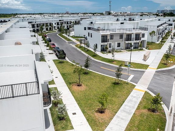 Grandville Townhouses New Home Construction Collection N Grey Exterior Facade with impact windows. Grandville is a new community in the heart of the Redlands. Concrete Homes with rooftop terrace and excellent amenities: kids' playground, BBQ with Gazebos, Doggie Park, visitor parking. 4 bedrooms with 3 baths, 2 parking spaces. Beautiful interiors with quartz countertops, modern style, grey open kitchen with stainless steel appliances. The primary bedroom has full bathroom, walk in closet and balcony. A unique flex-room on the ground floor includes closet and full bathroom, could be used as a bedroom/office or in-laws.