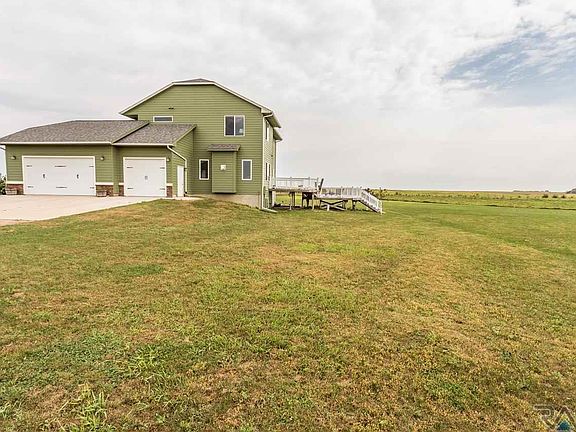 Relax and enjoy the magnificent views of Lake Vermillion from your Custom Built Home sitting on a 1.34 Acre Lot only 20 minutes from Sioux Falls! Main floor has 9 foot ceilings with an open floor plan! Kitchen has custom handmade solid maple cabinets, tons of counter space, convection oven, & kitchen pantry with dining with slider off the deck! Spacious living room with fireplace, surround sound, and formal dining room. Upper level has 3 beds on one level with master including walk-in closet, surround sound, & laundry on upper level with custom closets in all bedrooms. Lower level has another bedroom, large family room, lots of storage, surround sound & woodwork made from Black Hills pine trees! Home has Geo-Thermal heating & cooling. Large double tiered deck with composite decking with propane line to grill! Drip system for landscaping including a large garden!