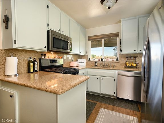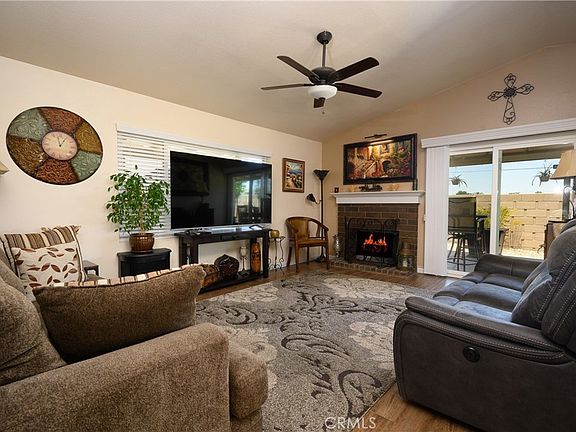 The backyard is a private oasis, thanks to block walls, and 2 covered patio areas … great for entertaining friends and family. Views of the snow capped mountains in the winter months. Completely landscaped yard with a mature lemon tree, palm trees, decorative rock, and drought tolerant plants. There is a secure gated side and back yard area for pets. Direct garage access to the oversized 2 car garage w attic storage and room for work benches on both sides of the finished garage. The Patio Homes Community offers fantastic amenities, including a well-appointed clubhouse with a full kitchen, barbecue, pool and spa. This turnkey home is ready for you to move in and start enjoying the best in 55+ community living.