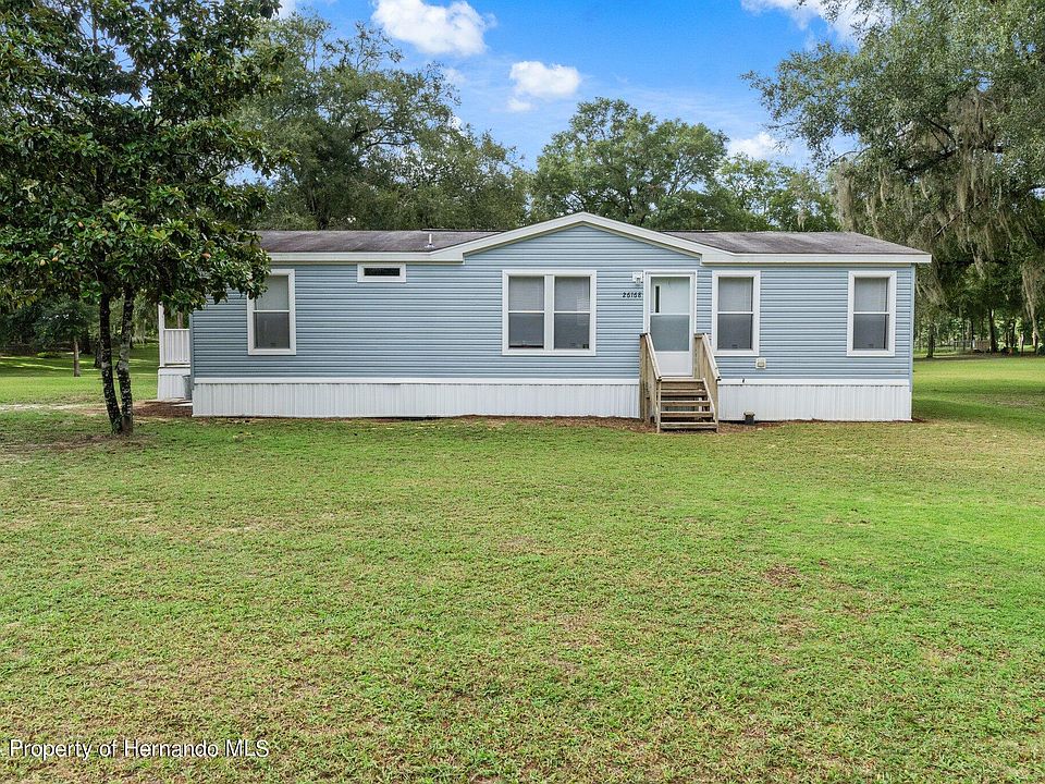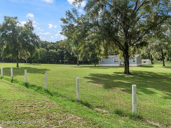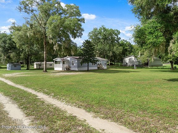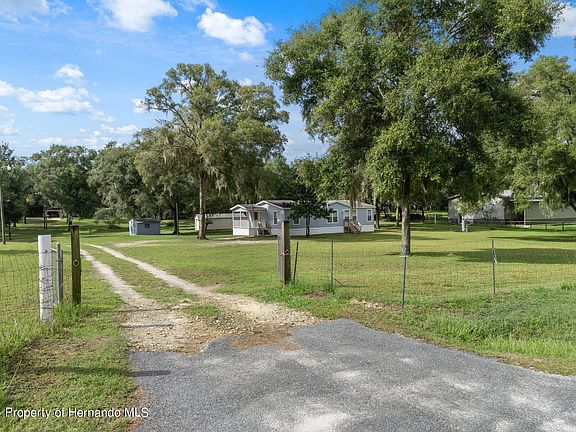 Discover the endless possibilities with this charming 3-bedroom, 2-bathroom manufactured home, nestled on a 2.50-acre lot. Offering ample space, privacy, and versatility, this property is perfect for those seeking a peaceful retreat. The open layout seamlessly connects the living, dining, and kitchen areas, creating an ideal setting for family gatherings and entertaining. The master suite, located on one side of the home for added privacy, features a walk-in closet, an en-suite bathroom with dual vanity, a soaking tub, and a separate shower. The third bedroom offers flexibility—perfect for a home office, hobby room, or an extra bedroom. The kitchen boasts a central island with seating, abundant cabinetry, and a spacious pantry for all your storage needs. An indoor laundry room adds convenience to everyday life. Outdoors, the property is adorned with mature trees, providing natural shade and a serene backdrop. A 34x17 metal shed, equipped with tie-downs, concrete floors, windows, a roll-up garage door, and wiring for electricity, adds practicality and functionality. The partially fenced yard is ideal for pets to roam safely, and there's plenty of space to park your RV or recreational vehicles. Recent updates include brand-new carpeting with a transferable warranty, fresh interior paint, updated fixtures, and ceiling fans. The back of the property borders the beautiful Croom Reserve, adding an extra layer of privacy and natural beauty. Whether you're looking for a spacious family home, a place to enjoy your hobbies, or a property with room for your pets and vehicles, this home offers it all. The possibilities are truly endless!