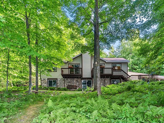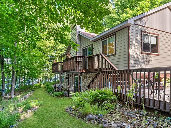 If you are looking for privacy on a wonderful Northwoods lake 90 minutes from the Twin Cities, then look no further! This is one of the nicest lots on beautiful Sand Lake with 1 1/2 acres and 430' of gradual elevation down to the sand bottom frontage! The main floor of the home has open concept living/kitchen/dining with vaulted ceilings and great views of the lake. The main floor also offers a large owners suite with walk-in closet and 3/4 bath and two additional bedrooms and full bath. The lower level walkout has a family room, large 4th bedroom, 3/4 bath and loads of storage space! Every room of the house offers views to the lake! The 4 car garage has a insulated & heated work space/man cave! The entire property has been impeccably cared for, updated and low maintenance! Quick close possible so book your showing and start living the good life on Sand Lake!