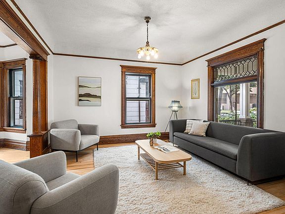 Wonderful turn-of-the-century, up/down duplex, flooded with natural light. Packed with tons of period charm, including leaded glass windows, hardwood floors, original woodwork + built-ins and charming light fixtures. Third floor could be a primary suite with addition of a bath, or would make a great studio space. Full basement with laundry area and storage space for each unit plus 3/4 bath. Detached 2 car garage. Sound investment, or owner-occupy.