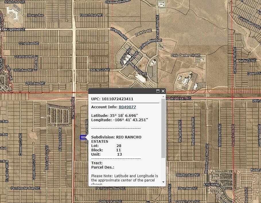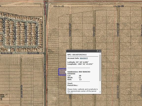 Prime investment opportunity! This one-acre property is located near Sandoval Regional Medical Center, City Hall, and the Event Center. Positioned in the heart of Rio Rancho's growing development area, this property is a great opportunity to secure land before utilities are added and prices rise. Currently zoned T-Z