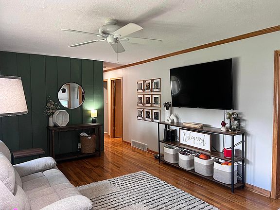 Great home in a great location!!!! Modern kitchen with smart appliances which include stove, refrigerator, microwave and dishwasher with new gold handles on cabinets for that extra touch. Fence is complete around the whole yard with a deck in back for entertaining. Cozy family room in basement with carpet and gas stove for the atmosphere and heat. Extra bonus room in basement. Pool table stays in the furnace room entertainment area. Great yard and newer roof, gutters and lots more. Come check it out.