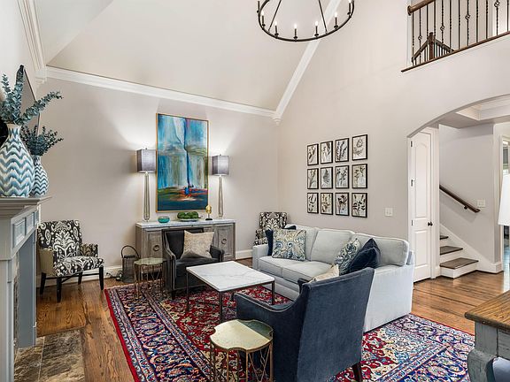 Just Listed in the gated community of Cobble Hill! Beautiful brick 2 story situated in a quiet cul da sac with almost a half acre of green space. This 5 bedroom/4.5 bath home boasts vaulted ceilings plus 10 ft ceilings on the main and gives a fabulous first impression as you enter the home. The details in the home such as the crown molding and beautifully crafted bull nosed corners, make this home extra special. Full sized dining room or additional living area off is located in the front of the home. Enjoy the spacious & gorgeously updated kitchen with eat in area and kitchen island. Venture to the master to find an oversized suite with sitting area and 5 piece bathroom en suite. In 2023, new carpet upstairs, updated bathrooms & entire home freshly painted with high end paint. 3 bedroom/2 bath upstairs PLUS bonus/rec room that could potentially be 6th bedroom. The backyard is a peaceful oasis that is fully fenced & great play space for kids or pets. Showings begin, Friday August 25th.