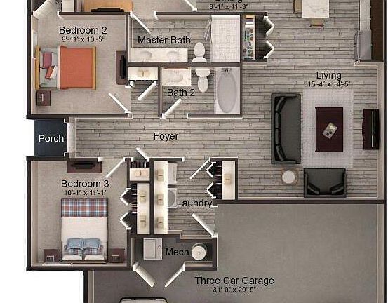The Mia floor plan by Verity Homes is a ranch, slab-on-grade home that proudly offers three bedrooms and two full baths. The expansive three stall garage is finished to drywall and fire tape with hot and cold water and includes a floor drain. As you enter from the garage you will walk into the owner's entrance that encompasses the laundry area and a separate coat closet. Passing through the entry you will walk into the foyer that possesses two bedrooms and one complete bathroom. The opposite side of the foyer, notice the 10' ceilings throughout, as you step into the open concept living/kitchen area with a separate dinning area. Off the back of the home boasts a covered patio. Advancing through the dinning area you will walk into the primary bedroom/bathroom combo, which offers dual vanity and a tiled shower. This patio home is to be built, which you will be able to be apart of the building process and will select the finishing touches. Don't miss the opportunity to customize this home, call you favorite REALTOR today! Photos are of renderings and previous builds.