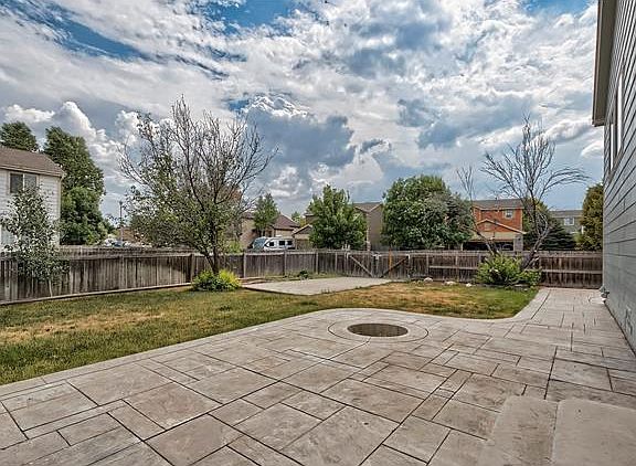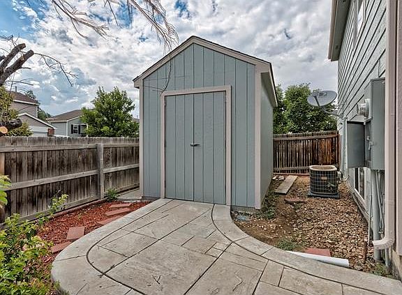 Welcome home to the desirable neighborhood of Walton Heath. This beautiful home boasts three generous sized bedrooms on the upper level including a master suite with a full bathroom and walk-in closet. Main level features a living room, spacious kitchen with eating space, additional living space off of kitchen which walks out to a large stamped concrete patio with built-in fire pit. Additional features include hardwood floors and new carpet throughout the main levels, central air conditioning, full finished garden level basement, fenced yard with RV pad and shed for additional storage, two car garage, new exterior paint. Close to parks, public transportation, shopping and I 25.