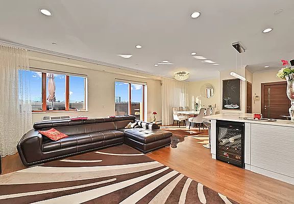 Penthouse condo in the elevator building has spacious and sunny 2 bedrooms with 2 bathrooms and terrace (600 s.f.). 9 ft ceiling. Parking and storage included in the price. One of a kind, 1,289 s.f was designed with quality. Unit features large living room, 2 really nice size bedrooms and 2 full baths. Tax abatement is still in place. Minute away from train station