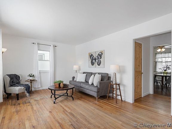 Get ready for an Epic Summer of home ownership with a covered back patio ready for your summer BBQs with friends! This home includes a fully fenced back yard with a dog run and side dog door adorned with so many gorgeous plants and trees; it's like owning your own mini park. Located central to everything! So much to love about this home including a security system, hardwood floors and solid construction ready for you to make it shine! Marble vanity in main bathroom, solid wood doors, as well as perks like A/C, sprinkler system front and back as well as an oversized garage and electrical in the adjacent large shed. All of this is ready for you! Call today for you showing of this incredible and affordable home in Cheyenne!