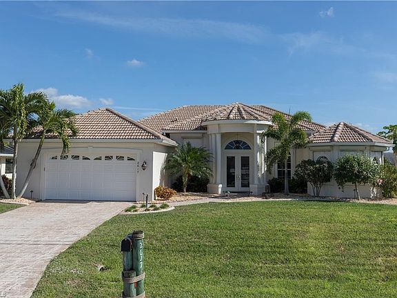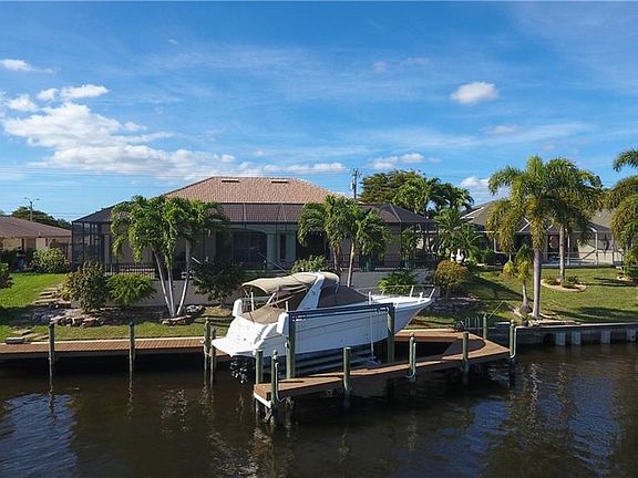 Captivating in so many ways! Stunning 3 bed + den/office gulf access home on 138 ft wide canal w/views of basin; over 2400 sq ft living area & 12K lb boat lift! You will fall in love immediately upon entering - views right out to pool, lanai & water! They did everything right: tile roof, expanded lanai w/heated pool & spa & plenty of room for sun & fun- all set in lush tropical setting. Open great room floor plan w/soaring ceilings, pocketing sliders, formal dining as well as large breakfast nook with mitered glass for optimal views! Fabulous open kitchen w/great cabinetry w/crown molding & lots of roll outs, stainless steel appliances, corian counters, & nice pantry. Tile floors t/o & carpet in bedrooms. A master suite you'll love to escape in - large master bath, huge w/i closet w/california closet; jetted tub and walk in shower; double sinks and just wonderful. Ample size guest bedrooms, inside laundry & oversized 2.5 car garage. Wraparound wooden dock w/expanded captains walk & large lift; LED lighting; resurfaced pool & replaced ac (2016); new pool heater (2017) pool pump (2018) flood zone X. stamped concrete drive & walkways,elec hurricane shutters; pristine condition!