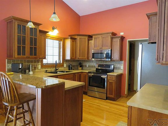 Here's a home you will want to pay attention to! There is a lot of house for the money! It is extremely spacious, warm & inviting. This 5 bedroom, 3 bath Ranch Walk-out has 3,094 finished Sq. Ft. 3 bedrooms & laundry on the main floor. Huge master suite features walk-in closet, shower & whirlpool tub! The Kitchen is graced with beautiful Starmark Cabinetry, Oak flooring in Kitchen and Dining room, lots of space & is open to the dining area. The lower level hosts a large family room, with reclaimed barn wood, game room area & exercise room! The covered south facing deck overlooks the stone walk-way & fire pit area. The heated over-sized triple garage includes a work shop area & lots of storage space. Maintenance free metal siding, soffits, decking & includes a sprinkler system! Plus this great location is walking distance from a park & golf course!