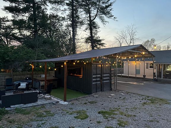 - Exterior features: Electricity not included in rent, Exterior bar inside converted shipping container, Exterior shed, Fire pit, Smart home features, Water not included in rent
