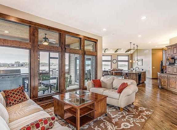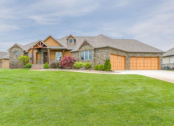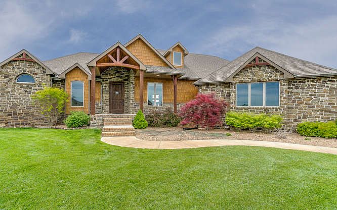 Exceptional Beach front Home in Wichita's Prestigous Emerald Bay Estates on a beautiful BLUE 60+ acre lake. Outstanding quality and detail like gorgeous wood floors, Knotty Alder wood work, granite counter tops, stacked stone fireplaces (40,000 BTU), top of the line light fixtures & ceiling fans, surround sound throughout, and an electronics HUB in the secret room (basement shelves in bar)controlling all the electronics in the home, plus much more. Wide open entertainers dream kitchen with an oversized island, double oven, HUGE walk-in pantry and self closing drawers AND cabinets throughout. Split bedroom plan, Master Suite TO DIE FOR, with walk-in closet that features built-ins galore, and master bath with HUGE walk-in shower, and a LARGE soaker tub, separate comode, his and her vanities, AND tons of cabinets/storage. In the walk-out basement you will find a beautiful wet bar with custom woodwork and a saloon door to bar storage. Another stacked stone (40,000 BTU) fireplace, an office, 3 more bedrooms (all 5 bedrooms have walk-in closets), 2 more bathrooms, LARGE view out windows and TONS of storage throughout the home. There is a concrete safe room that has an authentic bank Vault door, it is a "MUST SEE". Outdoors is just as impressive with a 3 month old Level 4, 50 year high-impact roof, an oversized 4 car garage with a back garage door for your lake toys and/or mower etc. Massive stacked stone pillars framing the patio and deck area and don't miss the wonderful screened in back deck, irrigation well and sprinkler system too. Both kitchen and bar area refrigerators, the TV about both fireplaces, Surround sound system along with complete electronics HUB for entire home are all available with a full price offer.