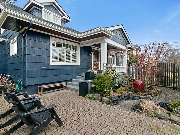 Classic Irvington Bungalow sits up off the street. Spend summer nights on the porch overlooking the landscaped yard. Vintage details with restored hardwood floors, fireplace, built-ins, formal dining room. Gather in the light-filled kitchen with french doors opening to the backyard. Dream kitchen with large island...share meals, spread out for a baking day! 6 burner Viking Professional gas range, double convection ovens. Invite friends and family over..easy entertaining with butler's pantry-wine cooler, bar sink, 2nd dishwasher. Retreat upstairs to the peaceful primary suite spanning the entire second floor! Soaking tub and tile shower, double sinks, walk-in closet, sitting area, skylight. Spacious main floor bedroom. Lower level finished fully permitted. Family room, media area, heated tile floors, bathroom with steam shower! Laundry room with extra cabinetry, fridge, sink. Separate access-lower level living possibilities! Follow the paver walkways to a Pacific NW yard complete with espalier apple trees, Ipe deck, lush plantings, even a gardening shed...once chicken coup! Fenced yard...bring the pups! Flat driveway to tuck-under garage... perfect for a camper van or electric car! Enjoy close-in living in historic Irvington. Walk to neighborhood park, shops, restaurants. Easy access to transit and downtown! Pre-inspected. Reports available. Rest easy-updates throughout. [Home Energy Score = 1. HES Report at https://rpt.greenbuildingregistry.com/hes/OR10213717]