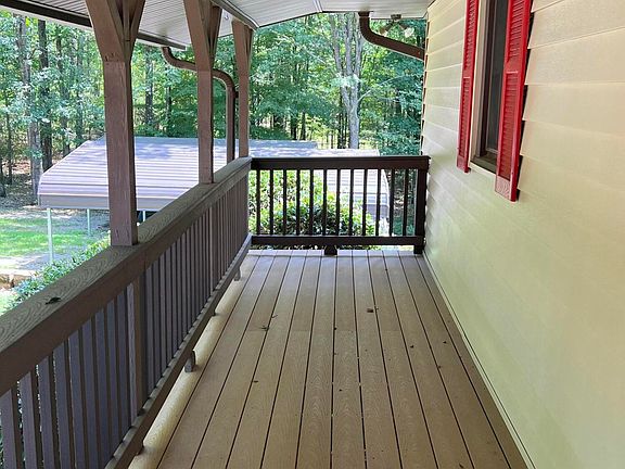 Want to feel like you're in the mountains? The circular driveway welcomes you to this 3 bedroom, 2 bath home with approximately 2400 sq. ft. This home is nestled on completely fenced 7.33 acres. Enjoy your mornings and evenings on the wrap around rear deck and front porch! Low maintenance with vinyl siding exterior and deck built with composite material. Beautiful views of the backyard with the sliding glass doors on both levels. Main level includes kitchen, living room, and owner's suite. Downstairs features a large sunroom, den, 2 additional bedrooms, full bath, and laundry room. There is a well for outdoor watering and public water for the house. Sold ''As Is''.