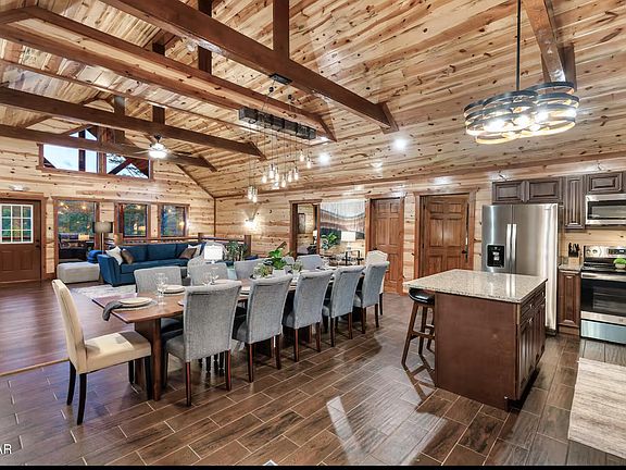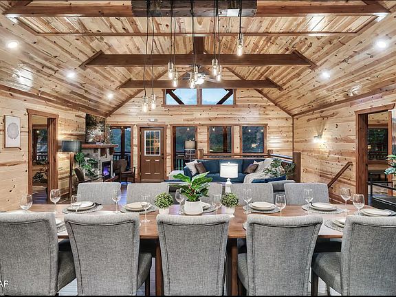 Rental History from August 2024-July 2025 is $409,752.53! Welcome to the ultimate pool cabin, featuring an incredible rooftop entertainment gazebo over the detached enclosed pool! Already established on a self-managed rental program and maxed out on interior design, this monster is turn key and ready to rock with an explosive rental history out of the gate. This log style cabin is nestled in a prime location and features 8 large bedrooms that each have their own private bathroom, no steep roads to navigate, plenty of parking, several entertainment systems, and a fully stocked kitchen. Inside you will be greeted by spacious living areas with large windows that flood the space with natural light. Outside you will find large decks great for entertaining or relaxing and taking in the fresh mountain air.