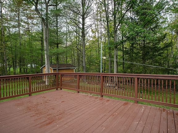 Looking for a SPACIOUS home? You've found it here in this lovely Raised Ranch style home on almost an acre of land! Featuring 5 bedrooms, 3 baths & plenty of storage space too! A welcoming foyer leads to the living rm, dining rm & large kitchen with loads of cabinets & a door to the oversized deck & yard! The lower level offers a huge family rm with a kitchenette, 2 bedrooms, bath, laundry rm & leads to a 2 car garage. A HUGE storage shed & a once used chicken coop! This is a perfect family home where you can sprawl out & offers some privacy too! The fireplaces are non working, never used.