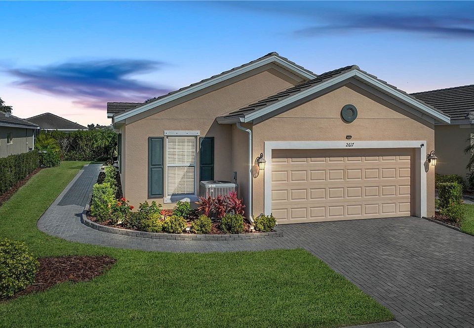 This Sabal Palm floor plan by Taylor Morrison is a wonderfully designed 3 bed 2 bath w/den open concept plan that is perfect for entertaining. The home has tile throughout (except for the bedrooms) w/four tray ceilings, 8 ft sliders leading to the oversized lanai so you can enjoy the outdoor living that is so well loved in SW Florida. The kitchen boasts 42 inch cabinets, upgraded stainless steel appliances, granite countertops w/complimentary decorative blacksplash The dining area is conveniently located off the kitchen. The master bedroom is exceptionally spacious w/an oversized walk in closet. The master bath has dual sinks & a large walk in shower w/bench seat. The two guest rooms are perfectly situated with an ensuite bath & there is also a den/study. New AC has been installed & has a warranty still in effect (8 yrs) The Sandoval Community is known for it's impeccable lush landscape & security. In addition to a carefree life style of enjoying the great outdoors with it's resort style pool, two walking dog parks, various sports courts (pickle ball), new community centre.