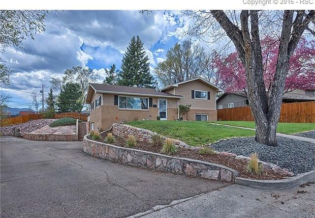 This fully remodeled gem is in a truly desirable location with 4 bedrooms and 2 1/2 bathrooms! Situated on a hill this 1/3 acre lot has Mountain views and a surprising amount of privacy in the fenced in back yard. The lot has a fair amount of trees so it feels like your own little oasis! The exterior has been maintained and is fully landscaped. There are hardwood floors throughout the main and upper level and a gourmet kitchen with stainless steel appliances, granite counter tops, tile back splash and a gas range. The main level is great for entertaining with an open concept floor plan and walk out to the gorgeous lush back yard. Upstairs the hard woods continue with the master suite to include a walk in closet and spare bedroom with full bathroom. Both bathrooms have been tastefully renovated as is the bathroom on the lower level. All with ceramic tile and updated vanities. Additionally there is a generous sized family room and then two more bedrooms round out the basement. This home has a security system, recessed lighting, a sump pump, a radon mitigation system, gas stove and side by side fridge with water dispenser in the kitchen along with granite counter tops, designer paint and an abundance of storage. There are two sheds in the back yard to help store yard tools and a covered patio area with pavers to sit, relax and soak in those Mountain and Pikes Peak views. The entire yard is landscaped to include a sprinkler system, mature trees and a massive driveway. Everything has been done for you- move right in and enjoy the summer! Conveniently located in Old Colorado City and downtown, near military installations, shopping, restaurants, trails, parks and more. Don't miss out on this jewel.