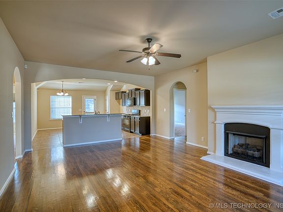 Nice full Brick home For Lease in Broken Arrow. Monthly Rent: $1,950. Functional split floor plan with four bedrooms or 3 bedrooms plus office. Granite Kitchen with island and pantry. Spacious living room with beautiful hardwood floors and fireplace. FRESH Paint and NEW LVP flooring in all the bedrooms and closets (no carpet). The master bathroom has double sink vanity, a tub, and a separate shower. Covered patio. Community ponds, park, and trails. Dogs under 30lbs, full grown, house broken can be considered with a non-refundable pet fee & pet deposit. NO smoking/vaping. Fantastic location! A six-month lease can be considered/negotiable.
