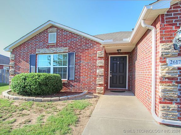 Awesome three-bedroom home in the sought after Iron Horse Ranch Addition! This charming residence features an open floor plan that seamlessly connects the spacious living room with its vaulted ceiling to the well appointed kitchen. The kitchen boasts a large wrap around countertop perfect for casual dining, plus a sizable dining area for more formal gatherings. The master suite offers a private bath with double sinks and a walk-in closet, providing a luxurious retreat. Great closet space is found throughout the home, ensuring ample storage for all your needs. Enjoy outdoor living in the covered patio area just outside the kitchen, which opens to a large, privacy-fenced backyard, ideal for relaxation and entertaining. The neighborhood amenities include, park, pond, and a clubhouse, perfect for family activities and community engagement. Plus, the location is conveniently close to Creek Turnpike, making commuting a breeze. Don't miss the opportunity to make this fantastic home yours in the vibrant Iron Horse Ranch Addition!