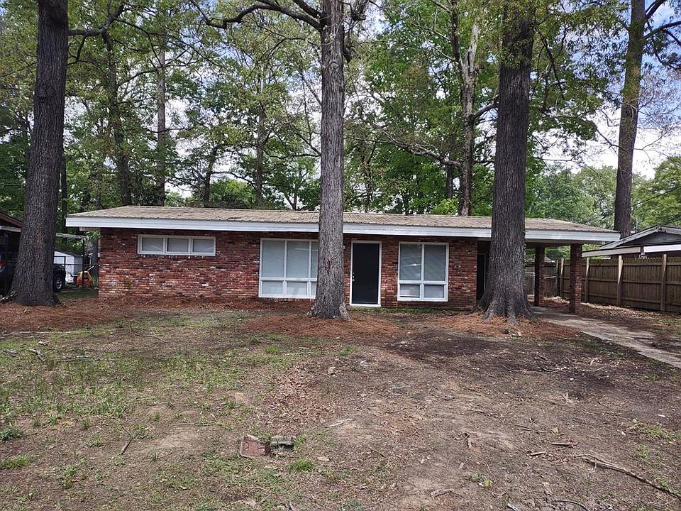 Move-in ready single-story brick home! This recently renovated home gives mid-century modern vibes with its ceilings and features an attached 1-car carport, level, fenced-in backyard, low maintenance yard with lots of shade, metal roof, new LVP & carpet flooring, a fresh coat of paint throughout, new granite countertops & stainless-steel kitchen appliances.