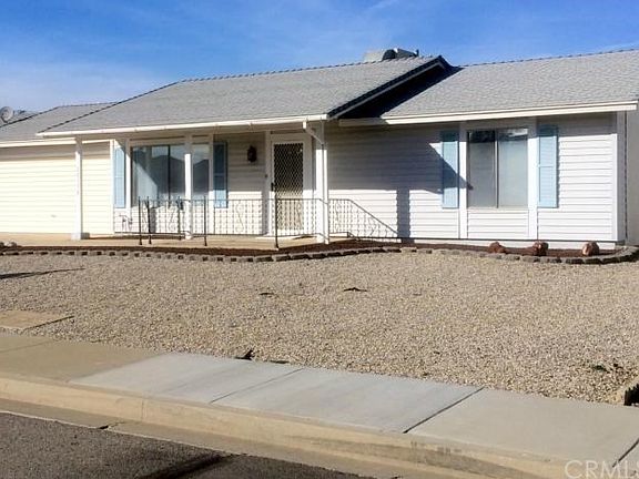 Great home for 55+. Home is clean as a whistle. Mr. & Mrs. Clean live here. Large rooms, Lovely location, great neighbors, large front and back yards. Curb appeal. Lots of light shines in the living room picture windows and house faces South. Bathroom has ceramic tile, shower and bathtub. Living room has gorgeous 3 piece wood entertainment cabinet. Light brightness pours into each room. Large picture windows in living room bring in lots of brightness. Bathroom done in nautical design, nice wooden cabinet above toilet. Added enclosed patio room for entertaining, meetings, just to sit and enjoy! Kitchen includes built-in stove/range/oven, refrigerator, disposal, and dishwasher. Two car garage with automatic remote door and back door Peaceful, calm living, to enjoy the Golden Years. Plenty to do for enjoyment! Two Golf Courses, close to lakes, two community pools, Clubhouse has banquet room, meeting rooms, more. Safer, very clean and quiet community. Neighborhood Watch, Street Cleaning, events year round. Nice neighbors. Close to shopping, medical/Hospital, with transportation. Close to Freeway. Low maintenance rockscape front and back saves money on water and time. Called "The Best kept secret in Southern California for 55+".