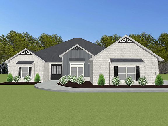 All brick Hamilton Plan B is an open plan with a 3 car side entry garage backed by a 2-10 home warranty.. Home has 4 bedrooms, 3 baths. Home has wood plus flooring (Mohawk Revwood, Engineered Hardwood or similar product) in all living areas and bedrooms. Great Room features 12' ceiling, extensive trim, gas-log fireplace with upgraded fireplace treatment, floor outlet, recessed lights and ceiling fan. Dining room has 12' coffered ceiling, extensive trim including shadow box under chair rail. Kitchen includes 12' ceiling, soft close custom cabinetry and granite counter tops, large island with extra storage and countertop seating, stainless appliances (Gas Cooktop, Cabinet Vent Hood, Wall Oven, Wall Microwave, Dishwasher), tile backsplash, recessed and under cabinet lighting, and huge walk-in pantry. Breakfast has 12' ceiling, wood plus flooring. Master bedroom has 11' double tray ceiling, recessed lighting, extensive trim and ceiling fan. Master bath has 11' ceilings, free standing tub, large tile shower with two shower heads and rimless shower door, separate toilet area, double vanity with granite countertops and large walk-in closet. The additional bedrooms have 9' ceilings, ceiling fans and crown molding. The additional baths have 9' ceilings, tile flooring and granite counter tops. Laundry has 9' ceiling, custom cabinet, and tile flooring. Dropzone bench by door to garage. Home has large rear covered porch with ceiling fan as well as additional covered porch behind the brea