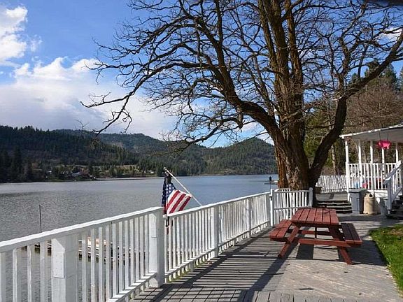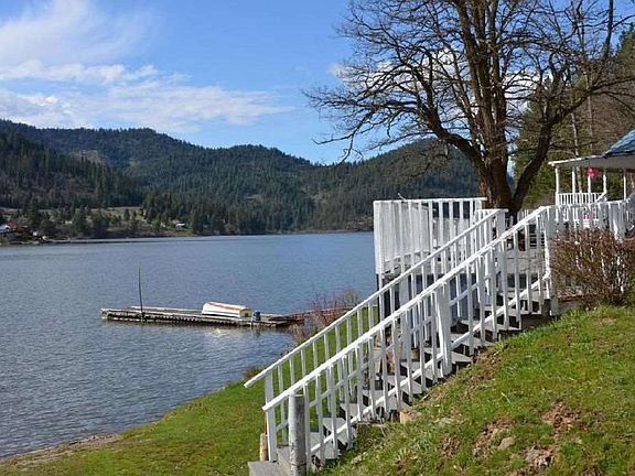 Incredible location! 1.3 acres of waterfront on Black Lake, fish, hunt, ski, wakeboard, right from your front door! Grass to the water, boat ramp, dock, room to build a shop and more cabins. Cabin has 2 sleeping rooms, 1.5 bathrooms, a huge bar, wood fireplace, oil stove, air conditioner, and a big walk in cooler. 2000+ sq ft of deck, covered deck, wood shed, garden storage, fruit trees, 2 RV sites with septic dumps. Cabin has its own well and septic, NO HOA's or CCR's! Come take a tour today!