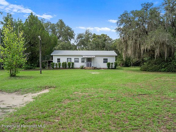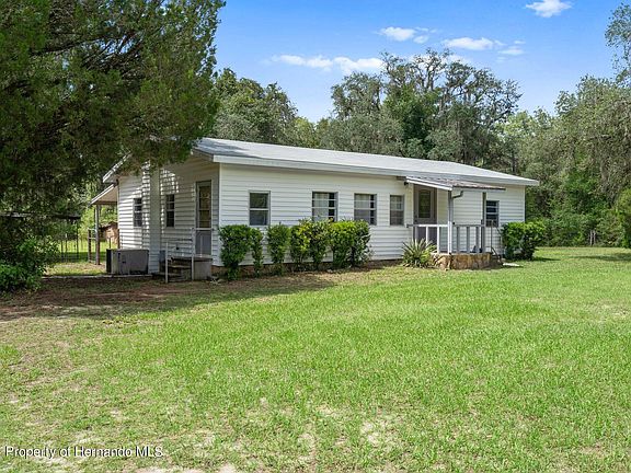 Nestled on a 2.5 acre, cross fenced lot, is not just a property but an opportunity for a homesteading lifestyle. Zoned AG and cross fenced for your animals as you experience the joy of country living. The upgrades are Roof in 2023, A/C is 6 yrs old, Well & Pump upgraded 5 yrs, new drainfield for septic. Painting interior, and vinyl siding on exterior of home.*The Fireplace is not working. The Living Room and Dining Room are ample sized, with a nook in the DR for Office or Craft area. Kitchen is smaller with wooden cabinets, and a window above the sink to view the expansive space of the backyard. Hallway has storage shelves built in. Shower surround has a built in seat. Main Bedroom has newer vinyl flooring, and Guest Bedroom has carpet and vinyl flooring combined. The covered back porch is the ideal spot for that tranquil morning coffee or tea. This property has an oval driveway and the home is situated under the shade of trees and mature blooming azaleas in season. It's just minutes from Lake Townsend Preserve offering a boat ramp for boating of fishing on the Withlacoochee River. Don't miss the chance to call this unique and tranquil property your home.