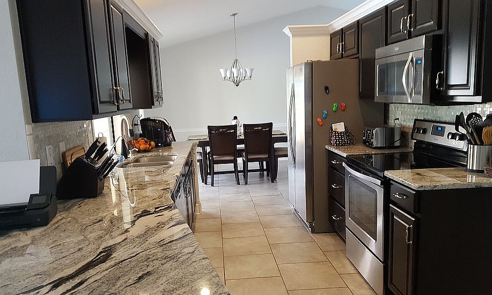 Beautiful 3-bedroom 2 bath Solar powered home with a pool, in the desirable community of Deep Creek. The homes' active solar system was install 2 yrs. ago for $36,000. Per owner, highest electric bill since solar system installed was $100. The 2nd & 3rd bedrooms are currently set up as a Mother-in-law suite or could be rental with private entrance. Closet set up with second kitchen was made to easily convert back to a closet. This home has been beautifully updated. The kitchen is stunning with solid cappuccino brown wood cabinets, granite counters, tile backsplash, and stainless-steel appliances. There is a whole house water softener, a reverse osmosis system in the kitchen, a 1 yr. old 4-ton HVAC, 2 yr. old hot water heater, programmable Honeywell thermostat which can be accessed by a Smart Phone, Ring Doorbell system at the front door and lanai. A real plus is the passive solar heated pool for year-round swimming. Also included is an automatic pool vacuum. Large greenbelt with beautiful areca palms that surround the home behind. You can truly enjoy the privacy and sense of spaciousness in your backyard. If you are a golfer, Deep Creek Country Club is minutes away, and if you are a boater there are many marinas and public boat ramps close by.