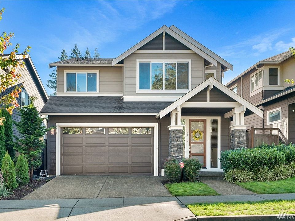North facing, Mainvue Resale in coveted Stonewater Creek! Hardwoods on main floor, den/flex room, chef's kitchen w/ Quartz counters & walk-in pantry, & SS app, dining & family room finishes main floor. 3 large bdrms, loft, laundry, spacious master w/ spa like bath on second floor. 10'x8' sliders, floor to ceiling windows allow tons of natural light. Expansive covered back deck w/ gas f/p, fully fenced yard with gate opens to community park, AC, tankless water heater are highlights of this Gem.