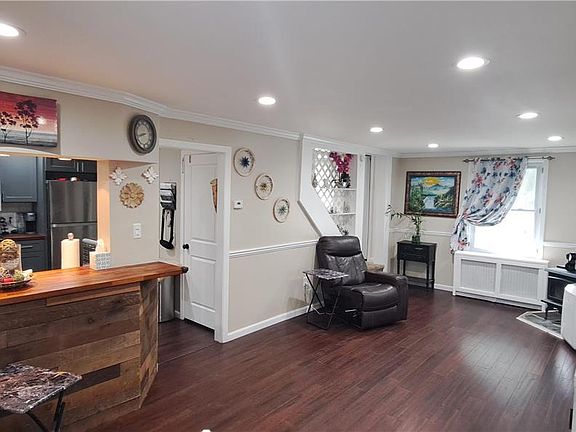 - Description: newer cabinetry, updated appliances, butcher block counters, open to LR, breakfast bar