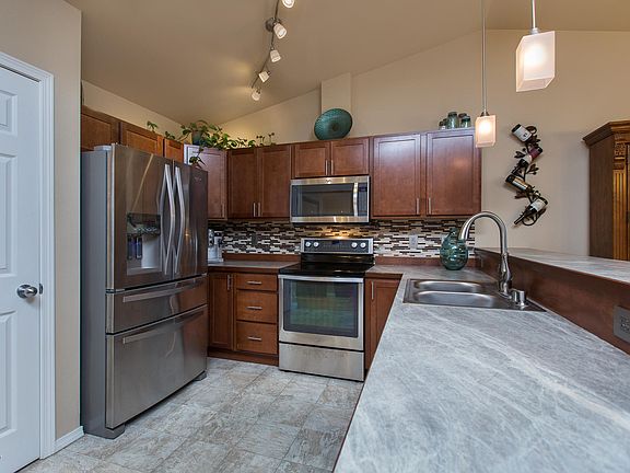 Beautiful Townhouse Style Condo conveniently located near JBER, hospitals and schools. Stainless Steel Appliances, upgraded flooring, blinds and lighting. 5+ Star Energy Rating! Master Suite upstairs with his and her closets, soaking tub and separate shower. Vaulted Ceilings upstairs and large windows for tons of light and mountain views!