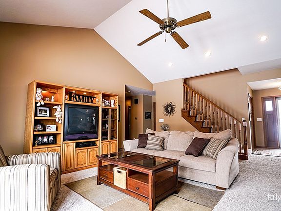 Well cared for 1 1/2 story home with 4+ bedrooms & 4 bath locations. Huge kitchen with abundant cabinets, large island with quartz & duraceramic floors. Main floor master with jet tub & separate shower. Two bedrooms up along with large bonus room. Full finished basement with bonus room, family room, rec room etc... Large main floor laundry. Custom built one owner home. Worth a look!