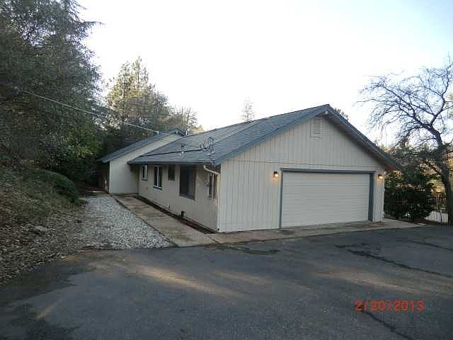 Great single story home in Christian Valley! The kitchen has natural wood cabinets, white appliances, and tile floors. Rock hearth _ fireplace in the living room, and an oversized sliding glass door overlooking the pool. Master bedroom also has a slider opening on to the pool area _ master bath has two sinks on separate vanities. Nice free form in ground pool with a patio around it. Detached two car garage has storage space upstairs and downstairs. This is a Fannie Mae HomePath property!_