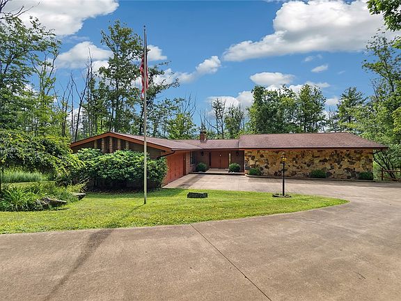 Corning mid century modern ranch home! Situated on a private wooded 3 acre lot, just outside of the city of Corning, this one owner custom built home was lovingly maintained for years. Walk in to beautiful large sunken living room with focal stone gas fire place. Huge sliding glass doors overlooking wooded and private back yard. Large eat in kitchen with granite counters flows to formal dining room with hardwood flooring. Main floor offers den/office space with built ins. Primary bedroom on the back of the house has ensuite bathroom. Additional large first floor bedroom, and full guest bathroom. Spacious 2 car garage walks in to kitchen. Laundry room on first floor! Fully finished lower level walks out to grassy back yard and has storage, bar area, office space and additional full bathroom.