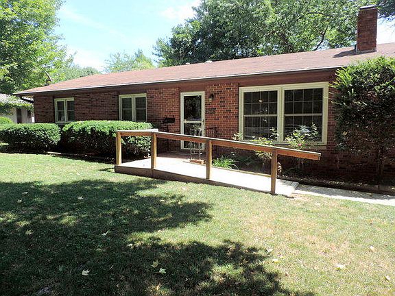 You will enjoy this wonderful brick ranch home on this large treed lot in Southern Hills. Several updates include a newer roof, gutters, gutter guards, windows (except for 3), wiring, breaker box, hard wired smoke detectors, garage doors, french doors in the kitchen dining area and more. Wood flooring in the living room, hallway and all three bedrooms. The baths have tile flooring and walk-in showers. There are 2 separate living areas with the family room having a gas fireplace. The kitchen is light and bright with painted cabinets and white appliances. The backyard is lovely with a multi-tier deck, fenced yard and storage building. The home also offers several handicap features including a ramp to the front door. The 2 car garage also has a nice storage area. There is a lawn sprinkler system in the front and side yards only. The seller is providing a 1 yr. HSA home warranty.
