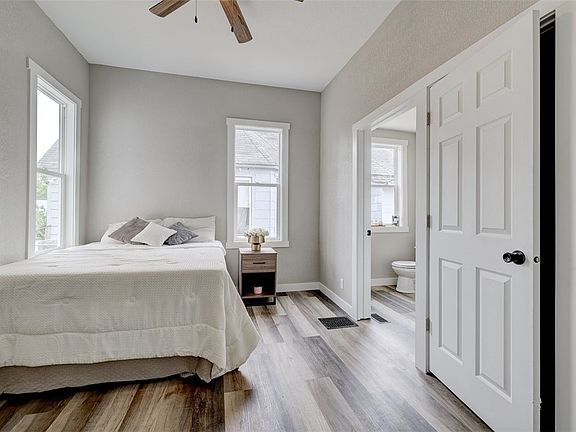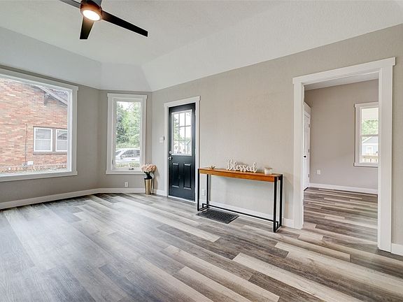 This delightful 2-bedroom 1 bath bungalow style home is located on the East side neighborhood, conveniently close to downtown. The inviting living room is bright with natural light and features high ceilings, while the bedrooms offer ample space, with the master bedroom includes a convenient 1/2 bath. Recently renovated with a modern touch, the property includes a full driveway leading to a 1-car detached garage, a welcoming front porch with a cute swing, fully fenced in with a good-sized backyard an ideal for hosting gatherings with loved ones. Within walking distance to the Fair grounds. Basement is primarily designated for storage purposes.