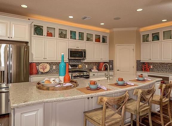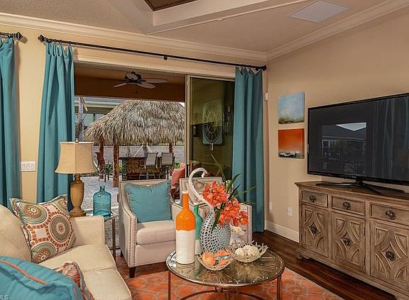 Part of the Coastal Collection, this exciting new home features a joint dining and family room for those who love entertaining. The kitchen has ample counter and cabinet space and two entry ways. The master suite has his-and-hers walk-in closets attached to the master bath. The den adds space for an office or hobby room. Located just ten minutes from Pine Island - in one of the most desirable areas within Cape Coral - Sandoval is a unique residential community that seems like a tropical vacation, with amenities and recreation areas unlike any in Southwest Florida. From a water park to fishing to all kinds of sports facilities, even 2 dog parks for your four legged family members. Sandoval is as much a resort as it is a place to live - with easy access to shopping, fine dining and entertainment. Top rated Trafalgar Middle School and Elementary School along with the Cape Coral Sports Complex are also within easy walking distance. With a gated entry, lush landscaping, winding streets, and ample sidewalks, Sandoval offers a broad range of home designs for home buyers of all ages. Within this spectacular 524-acre master-planned community.Ready in July. Photos of Model Home